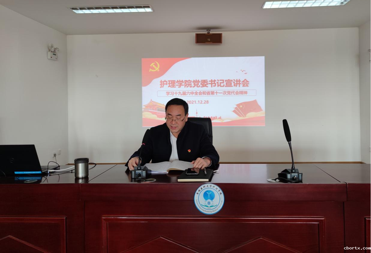 根据《中共18luck备用登录护理学院委员会关于印发学习十九届六中全会和省第十一次党代会精神工作方案的通知》要求,12月28日,护理学院党委书记姚树明在护理学楼501教室进行宣讲,全面领学党的十九届六中全会和省第十一次党代会精神。学院各支部党员代表、团员代表参加了本次宣讲会。