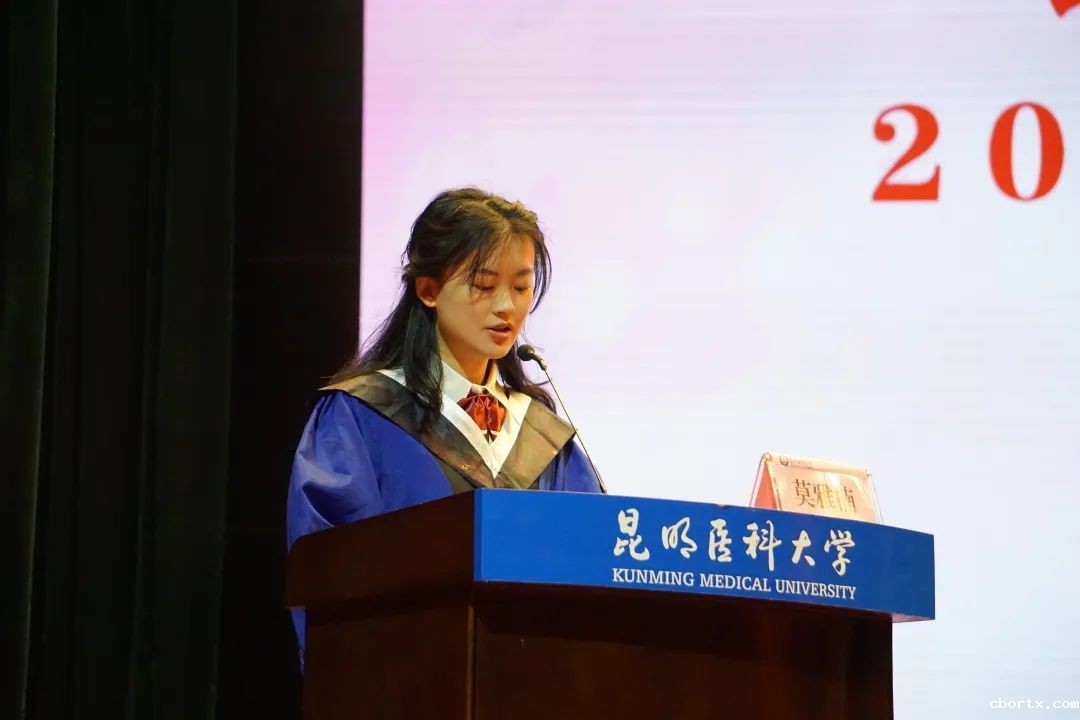 莫雅楠同学和项子莹同学带着对母校的感激和不舍诉说着离别的感言,她们在发言中回忆了在校学习生活的点点滴滴,对母校、导师、学院领导和老师、同窗们表达了诚挚的感谢。表示未来会牢记恩师们的谆谆教诲,牢记校训和院训,脚踏实地,用辛勤与汗水、知识与才华,用爱心,细心,耐心,责任心肩负起守护生命的重任。