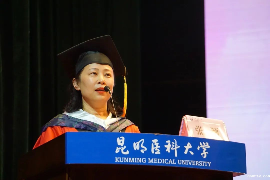 护理学院院长张颖致辞。她对顺利完成学业,即将扬帆起航的护理学子们表示热烈的祝贺。张颖院长回顾了这几年在前辈艰苦创业的基础上,全体师生勠力同心、奋楫笃行,学院迎来了高速发展的新时期,通过了中华人民共和国教育部护理学专业认证,获批国家一流专业建设点,与泰国玛希隆大学合作举办护理学专业本科教育项目获中华人民共和国教育部批准,实现了校级创新团队、云南省教育厅重点实验室、卫生科技成果奖等突破。道阻且长,行将必至。希望同学们不要随波逐流,要积极行动起来。无论未来从事什么行业,都要坚持不断地学习,变得更好。牢记“崇德、精业、团结、奉献”的校训,将“博学、善思、修德、立德”的院训镌刻入毕业生未来奋斗的岁月,行而不辍,未来可期。