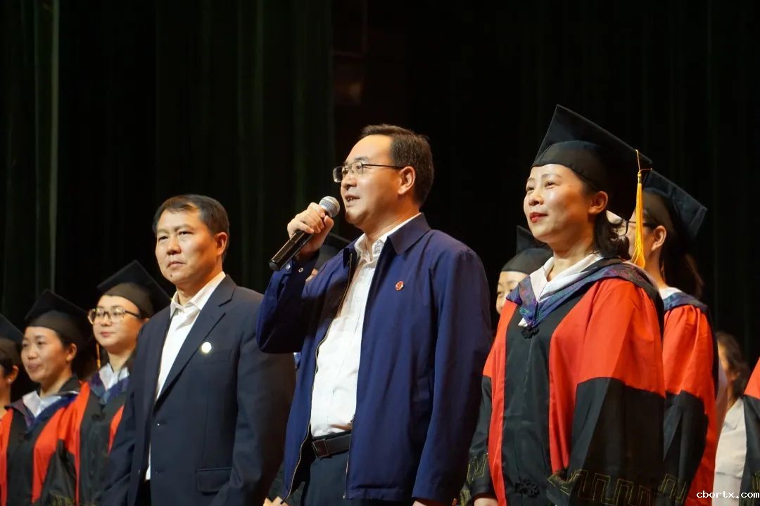 教师代表张杪深情地希望同学们学会分享,终身学习、牢记责任。医学之路,幽深绵长,欲知之真谛,必然不懈求索,医学承载着人类最大的希望和利益,是最堪予付的人生事业,值得同学们担当作为、执着坚守、终身奉献。希望同学们在将来的职业道路上践行“博学、善思、修德、立能”的院训和庄重许下的誓言,脚踏实地,用学识和努力,把未来的职业之路、人生之路越走越宽,越走越好。