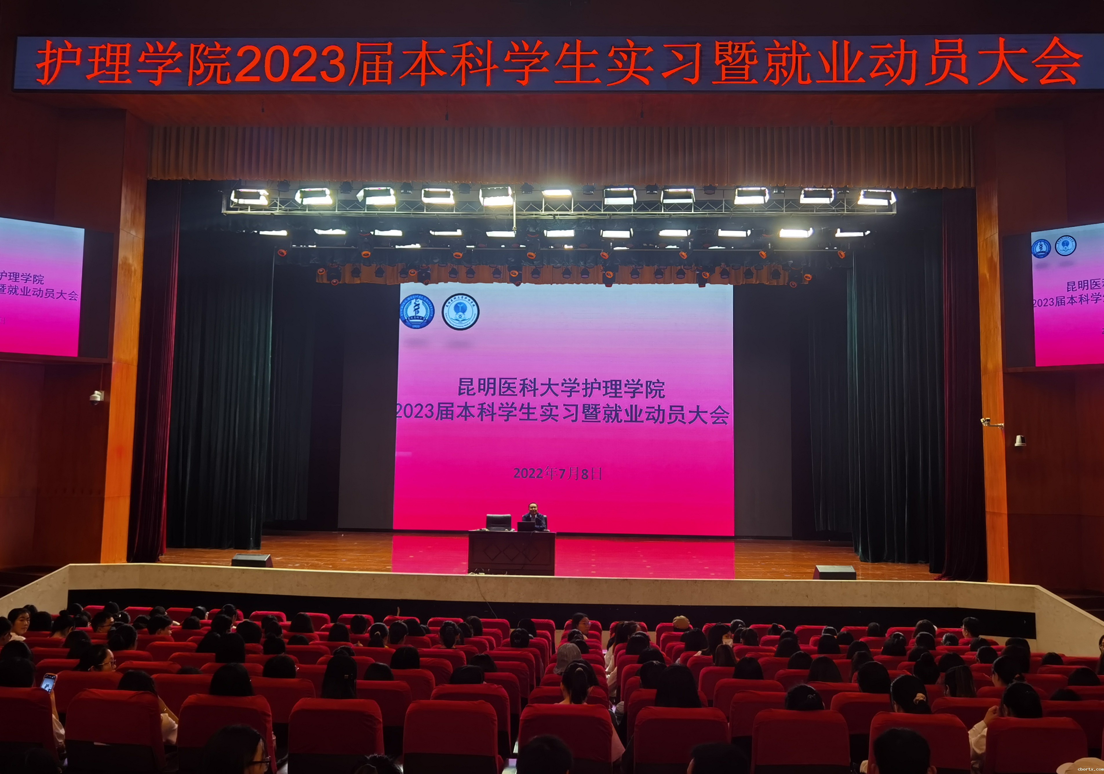 7月8日下午,护理学院在呈贡校区学生会堂召开2023届本科学生实习暨就业动员大会。学院党委书记姚树明、副书记聂兆祥出席会议,相关辅导员和全体2023届本科毕业学生600余人参加会议。