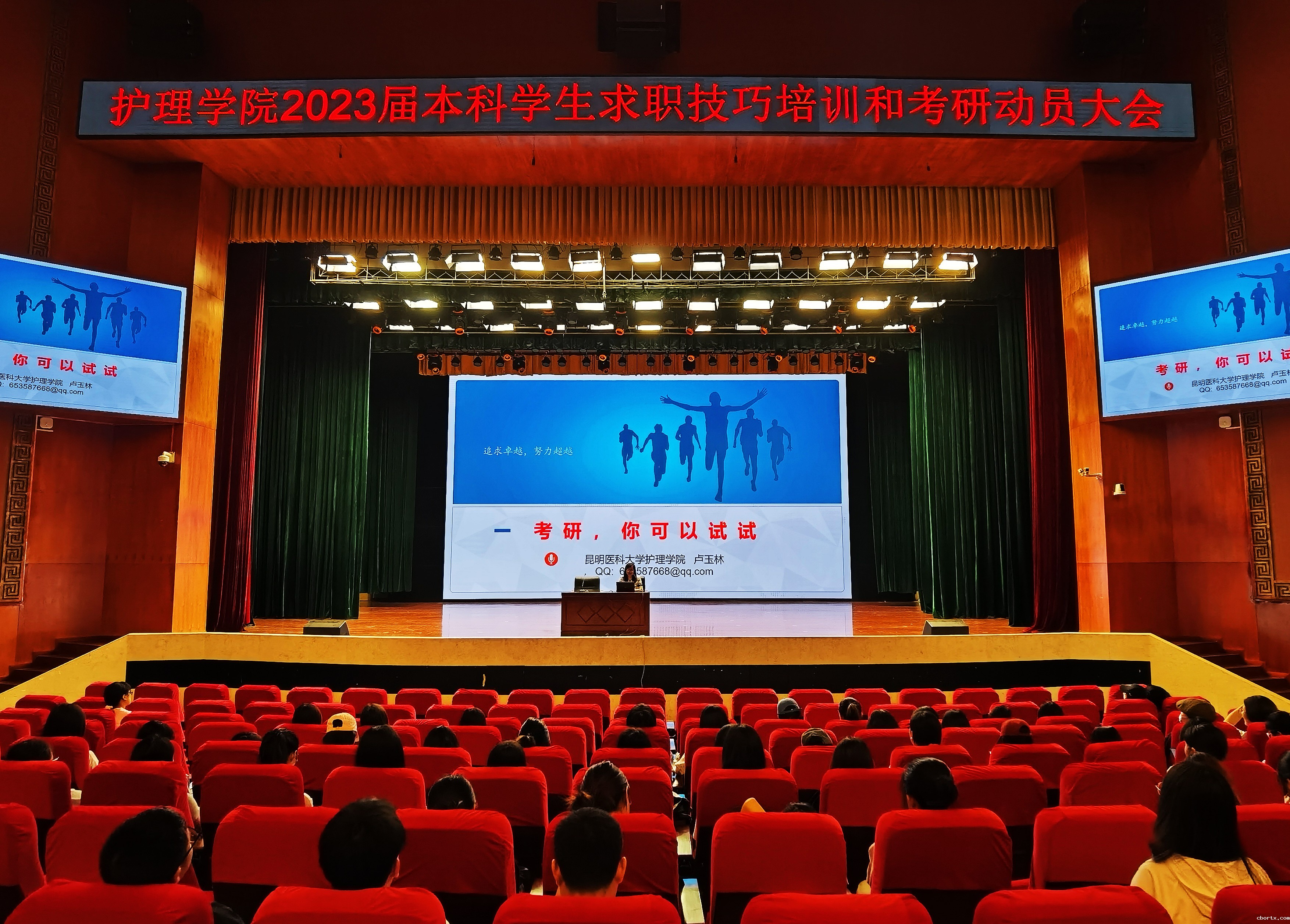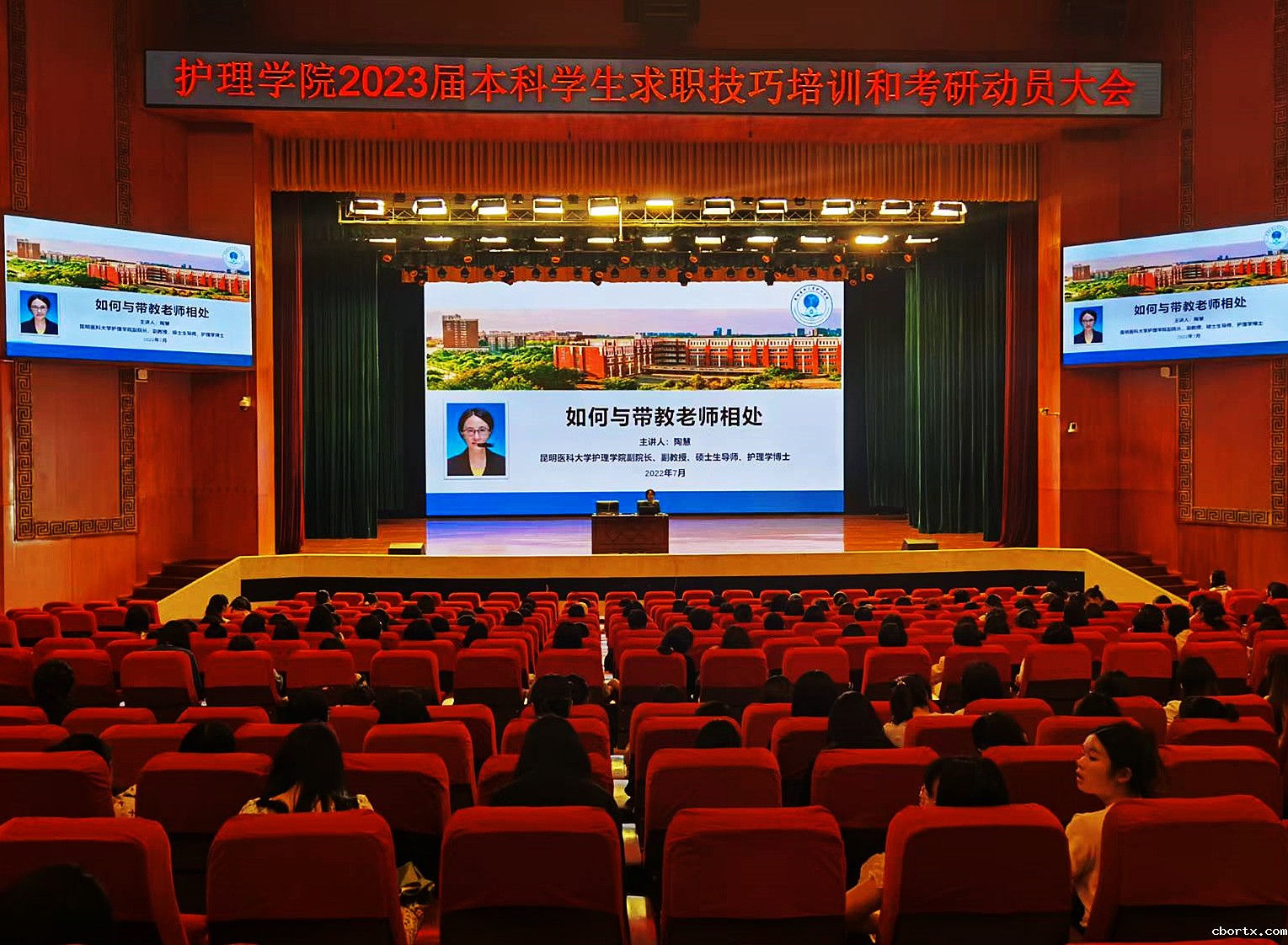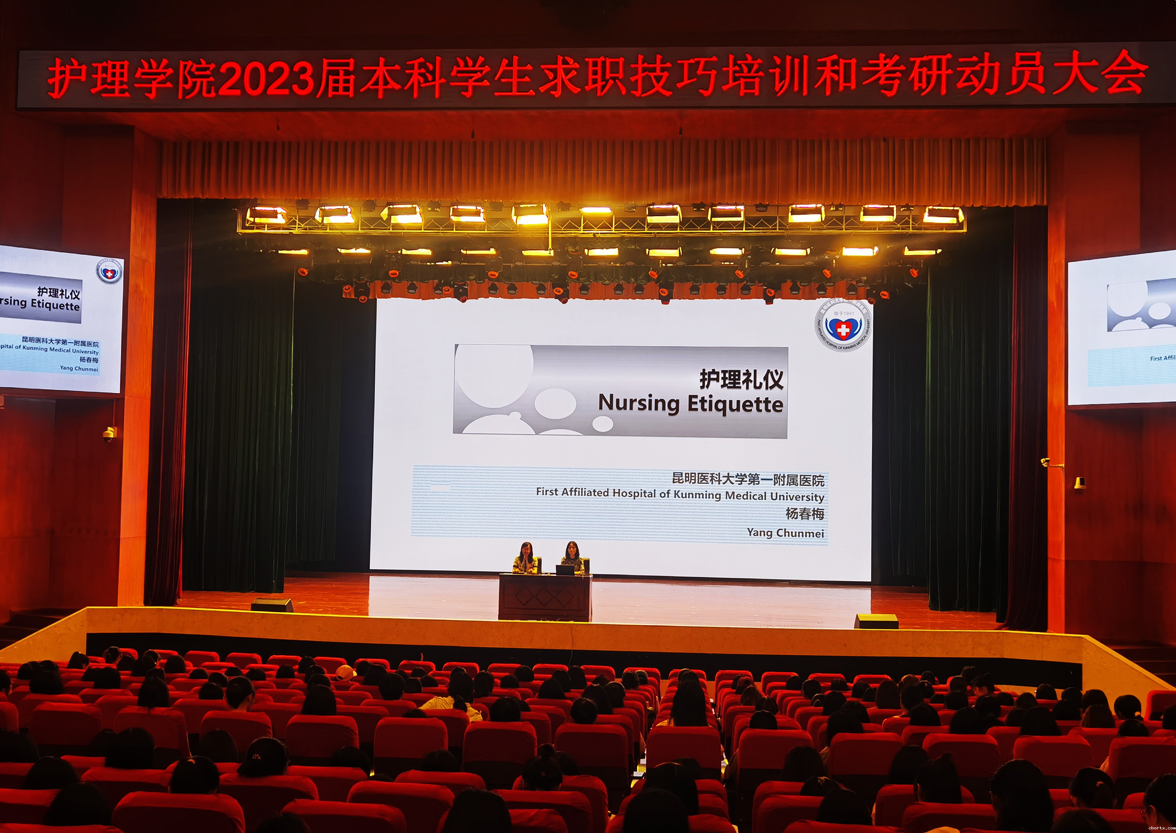 7月14日上午,护理学院在呈贡校区学生会堂召开护理学院2023届本科毕业学生求职技巧培训和考研动员大会,学院邀请了18luck备用登录第一附属医院护理部副主任杨春梅作求职技巧培训,学院副院长卢玉林、副院长陶慧出席会议,相关辅导员和全体2023届本科毕业学生600余人参加会议。