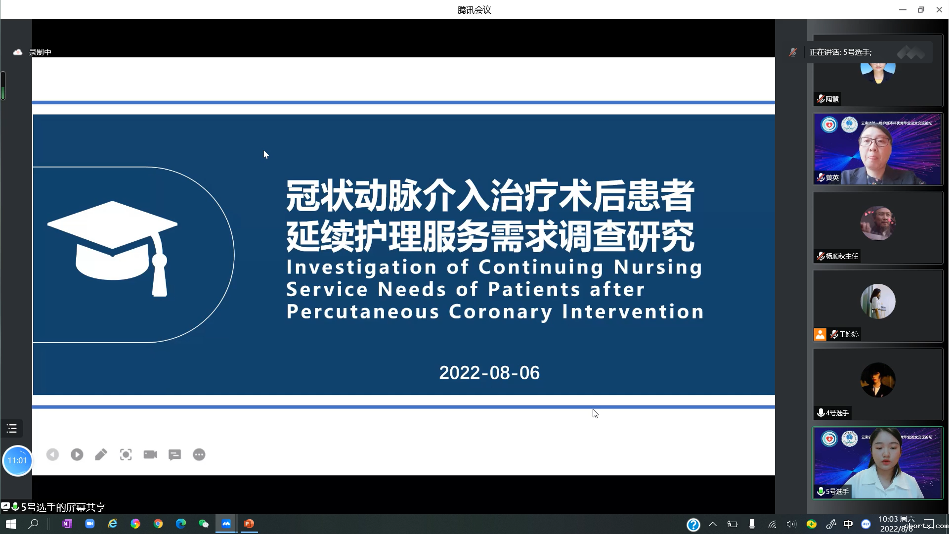 本次论坛论文征集及评选过程分为三个阶段,包括院校择优推荐、论文初审、线上交流汇报与评奖。经过层层遴选,最终8篇论文进入线上交流环节,汇报学生的选题关注当下护理教育、临床护理、公共卫生领域的热点问题,研究对象广泛,涉及患者、护生、临床医学专业学生、医生、护士等群体,除综述外多数论文为实证研究,在全面汇报与展示的基础上,汇报学生逐一回答点评专家的提问。各位专家评委就研究意义与价值、文献检索的规范、研究对象的纳排标准、量表的信效度、样本量的计算、数据收集及质量控制、统计学方法的合理性等方面,与汇报者进行了深入交流讨论和悉心指导。