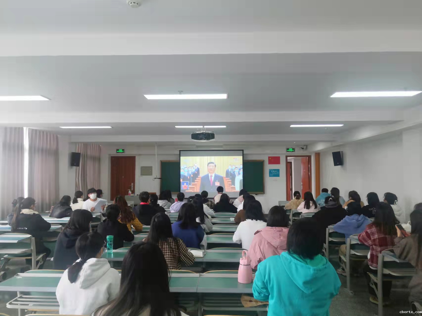 中国共产党第二十次全国代表大会(以下简称党的二十大)是在迈上全面建设社会主义现代化国家新征程、向第二个百年奋斗目标进军的关键时刻召开的一次十分重要的大会。大会明确宣示党在新征程上举什么旗、走什么路、以什么样的精神状态、朝着什么样的目标继续前进,对全面建成社会主义现代化强国两步走战略安排进行宏观展望,科学谋划未来5年乃至更长时期党和国家事业发展的目标任务和大政方针。学习现场,师生学习热情高涨,聚精会神聆听习近平总书记的报告,期间多次热烈鼓掌。