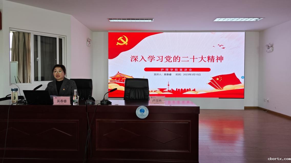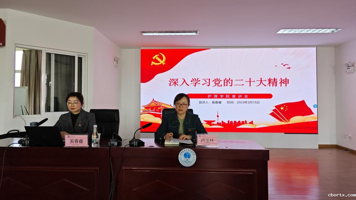 3月15日下午,根据学校党委安排部署,学校副校长奚春睿以《学习党的二十大精神 推进学校高质量发展》为题到护理学院开展宣讲会,专题深入学习党的二十大精神。学校教务处领导、学院党政领导、各党支部书记及学生党员、教师代表等90余人参加了宣讲会。学院副院长(主持工作)卢玉林主持本次会议。