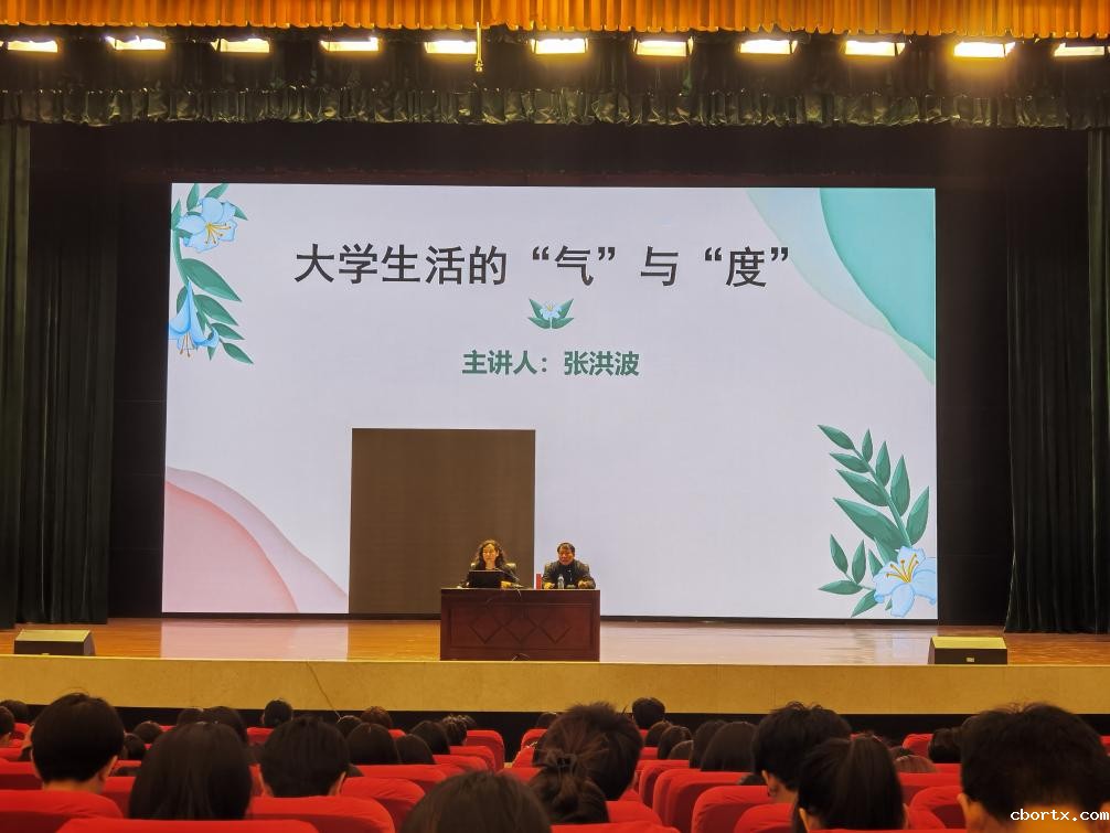 张洪波以“大学生活的‘气’与‘度’”为题,从生活之变、生活之困、生活之气、生活之度等四个方面,为大一学生全面梳理面对的变化,提供有关学习、交友和未来规划的科学合理建议。她指出,作为新时代青年要拥有“天生我材必有用,千金散尽还复来”的底气,增强“虎瘦雄心在,人穷志不短”的骨气,树立“博观而约取,厚积而博发”的志气,明确生活的角度、高度和尺度,寄语青年学生要敬畏生命,未雨绸缪,自我磨练,快乐生活