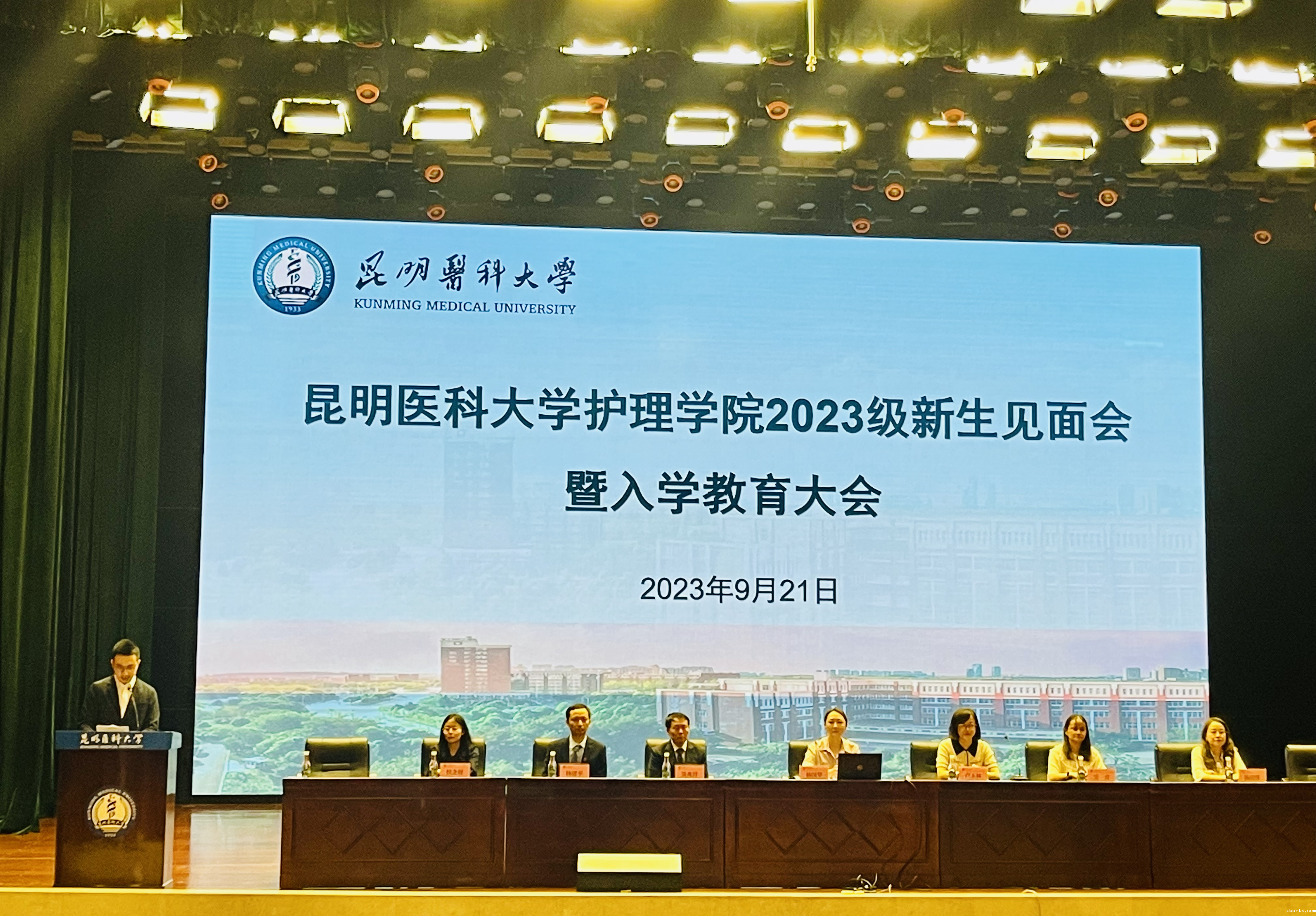 9月21日16:30 ,护理学院2023级新生见面会暨入学教育在学生会堂举行,学院党委副书记、院长卢玉林、副书记聂兆祥和各科室、教研室负责人、新生班主任及全体新生参加了此次见面会暨入学教育,会议由学院党委书记杨国华主持。