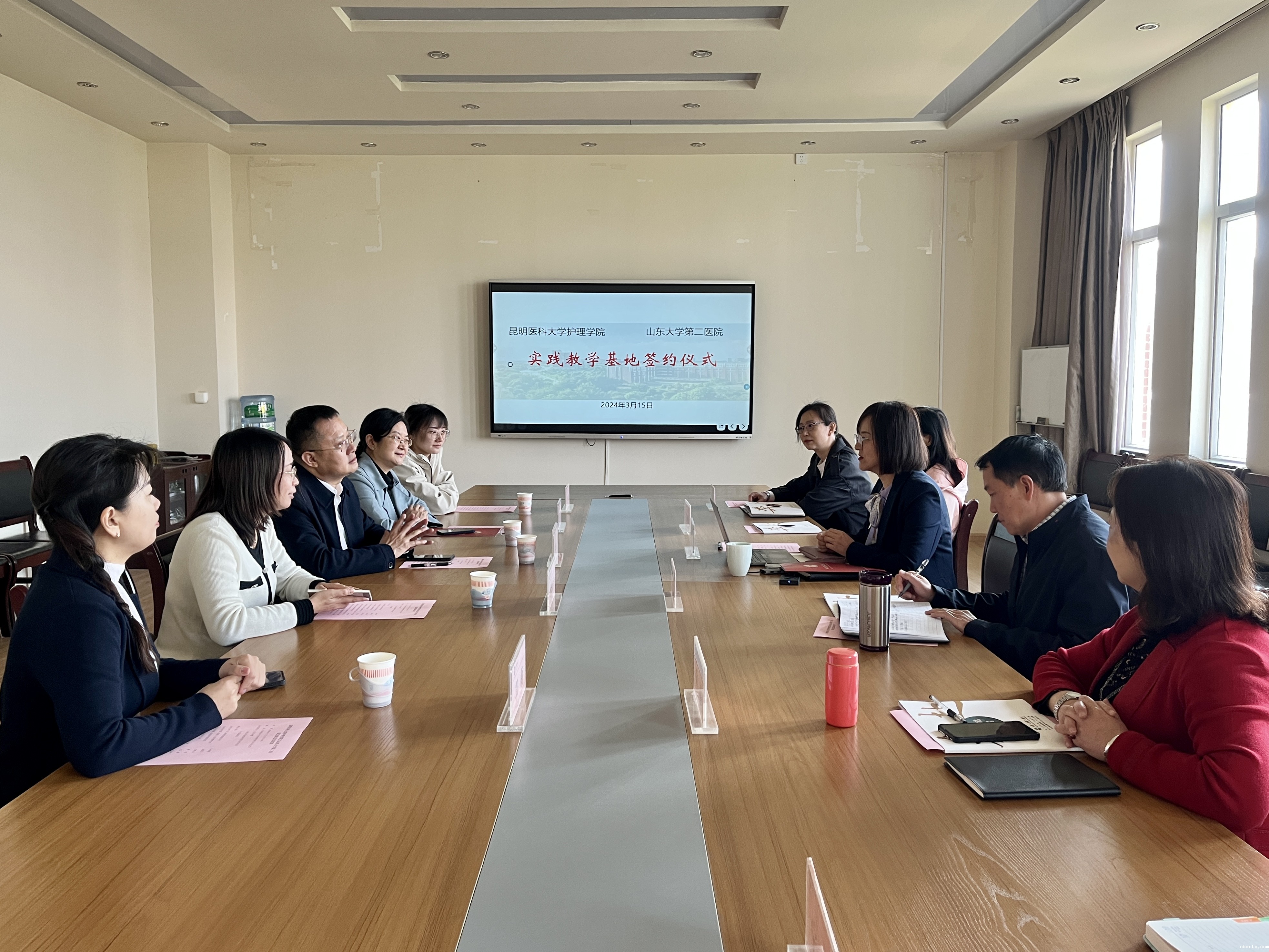 最后,双方代表签署了实习协议,并进行了友好交流。此次活动标志着护理学院与山东大学第二医院在人才培养方面的合作迈出了坚实的一步,今后双方将共同努力,拓宽交流平台,为推动护理事业的持续发展而不懈努力。