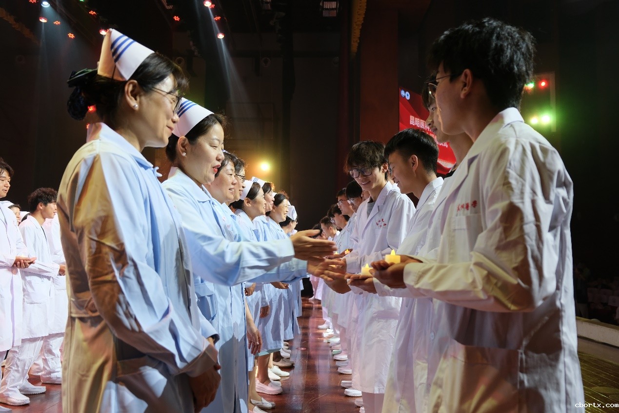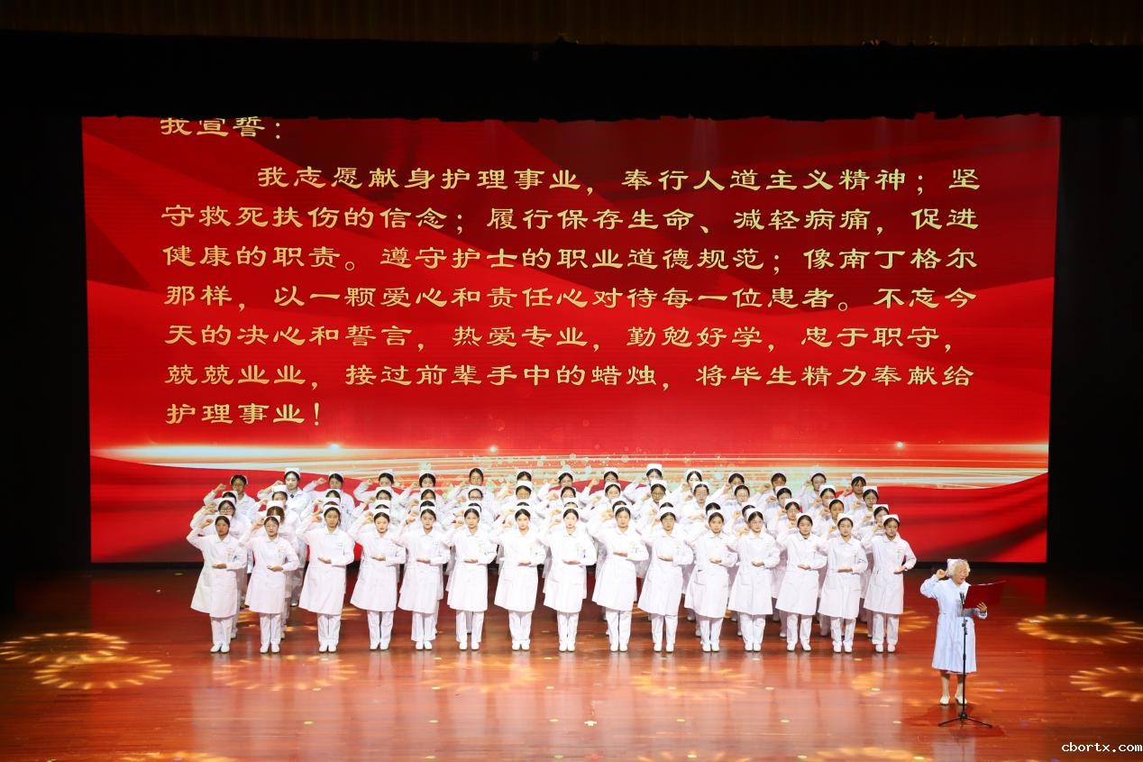 接着,举行了2024 级新生授帽仪式。新护生接受护理前辈和专家们的授帽礼,接过“燃烧自己,照亮他人”的蜡烛,并在专业创始人犹品素教授的带领下进行了庄严宣誓。