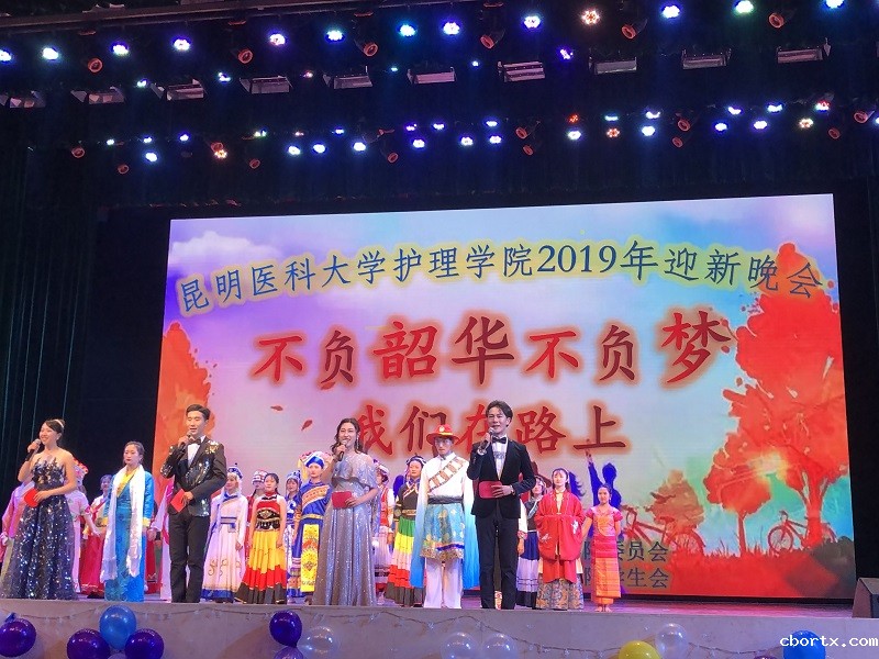 20191226日,护理学院2019年“不负韶华不负梦  我们在路上”迎新晚会在呈贡校区学生会堂举行。护理学院院长张颖、党委副书记孙选平、副院长卢玉林、党委专职组织员刘红以及来自学生工作办公室、教学管理办公室、学科科研暨研究生管理办公室的教师代表参加。
