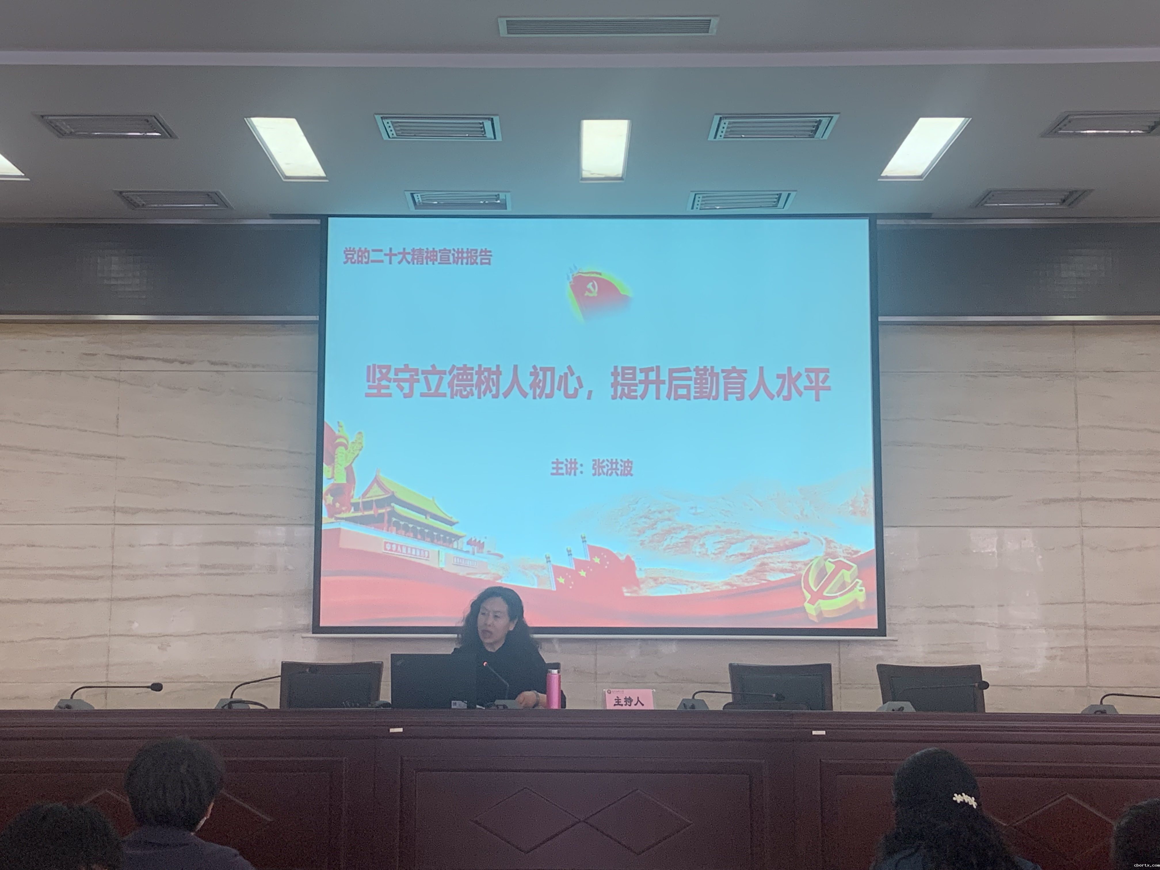 张洪波副校长以《坚守立德树人初心,提升后勤育人水平》为题,开展了专题宣讲。
