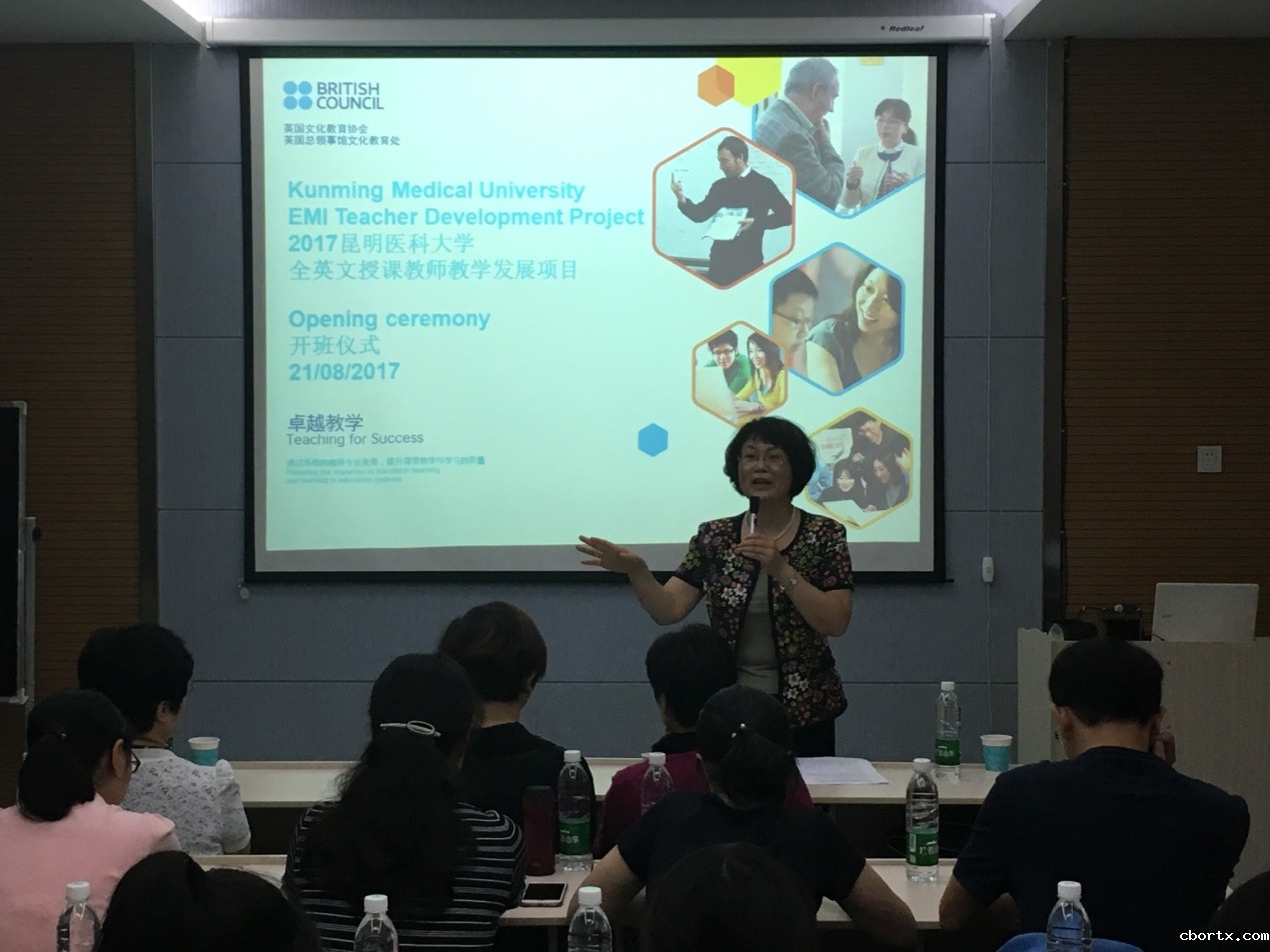 8月21日上午,2017年中英合作-18luck备用登录EMI全英文授课教师教学发展项目开班仪式在学校第二附属医院举行,学校副校长李燕及相关部门负责人、英国总领馆文化教育处高级经理黎瑞、培训师Susan Hillyard女士及28位参训教师等参加了开班仪式。