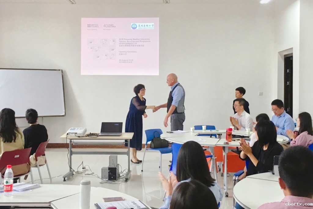 在开班仪式上,李燕副校长作了动员讲话。她对前两期培训班取得的成果给予了充分肯定,今后学校将进一步拓展教师发展中英合作项目,让我校有更多的教师参与此类培训,使国际学生和本国学生都能从中受益,也为教师今后的职业发展打下良好的基础。同时,她对本期参训教师提出了学习要求和期望,一是要学有所获,发展提高,将所学应用到MBBS和本科教学实践中,提升教学和学习效果,不断提高学校教育教学质量;二是要在今后的工作中努力养成“学习—研究—反思”的良好习惯。