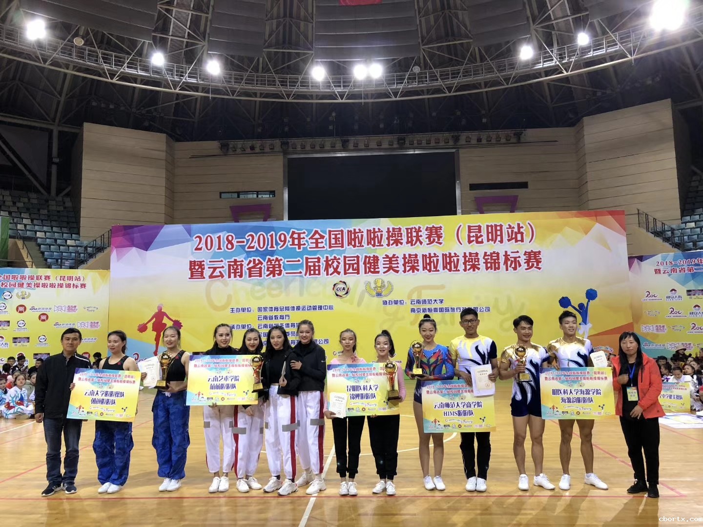 11月9日至11日,2018年至2019年全国啦啦操联赛(昆明站)暨云南省第二届校园啦啦操锦标赛在云南师范大学落下帷幕。我校啦啦操代表19名队员参加比赛,获得了“系列校园健身操提高套”冠军的好成绩,同时还获得了“双人自选动作街舞”第三名,“2016年校园啦啦操示范套”第四名,“双人自选动作花球”第七名的成绩,“体育道德风尚奖”也收入囊中。