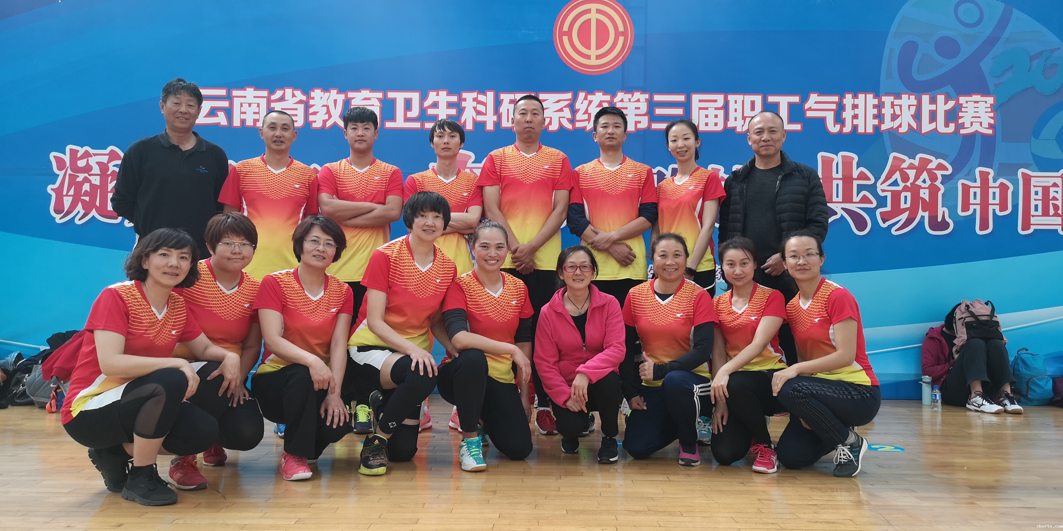 11月19日~11月23日,云南省第三届教育卫生科研系统气排球赛在云南师范大学举行,我校男女教职工代表队参加了比赛,经过了5天9场比赛,我校女队荣获教育B组第二名的好成绩,男队在本届比赛中晋升到教育A组,虽然没有取得优异的名次,但在比赛中敢打敢拼,赛出了水平赛出了风格。