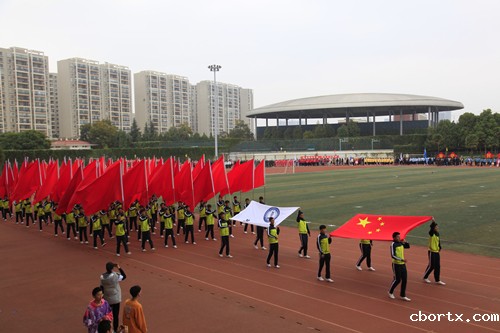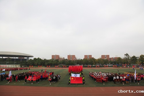 护旗队、花束队及校属各单位代表方队依次入场接受检阅。今年,学校还在观众席设置了样式多变的花束和拼字表演,台上台下表演相呼应,不断将运动会推向高潮。