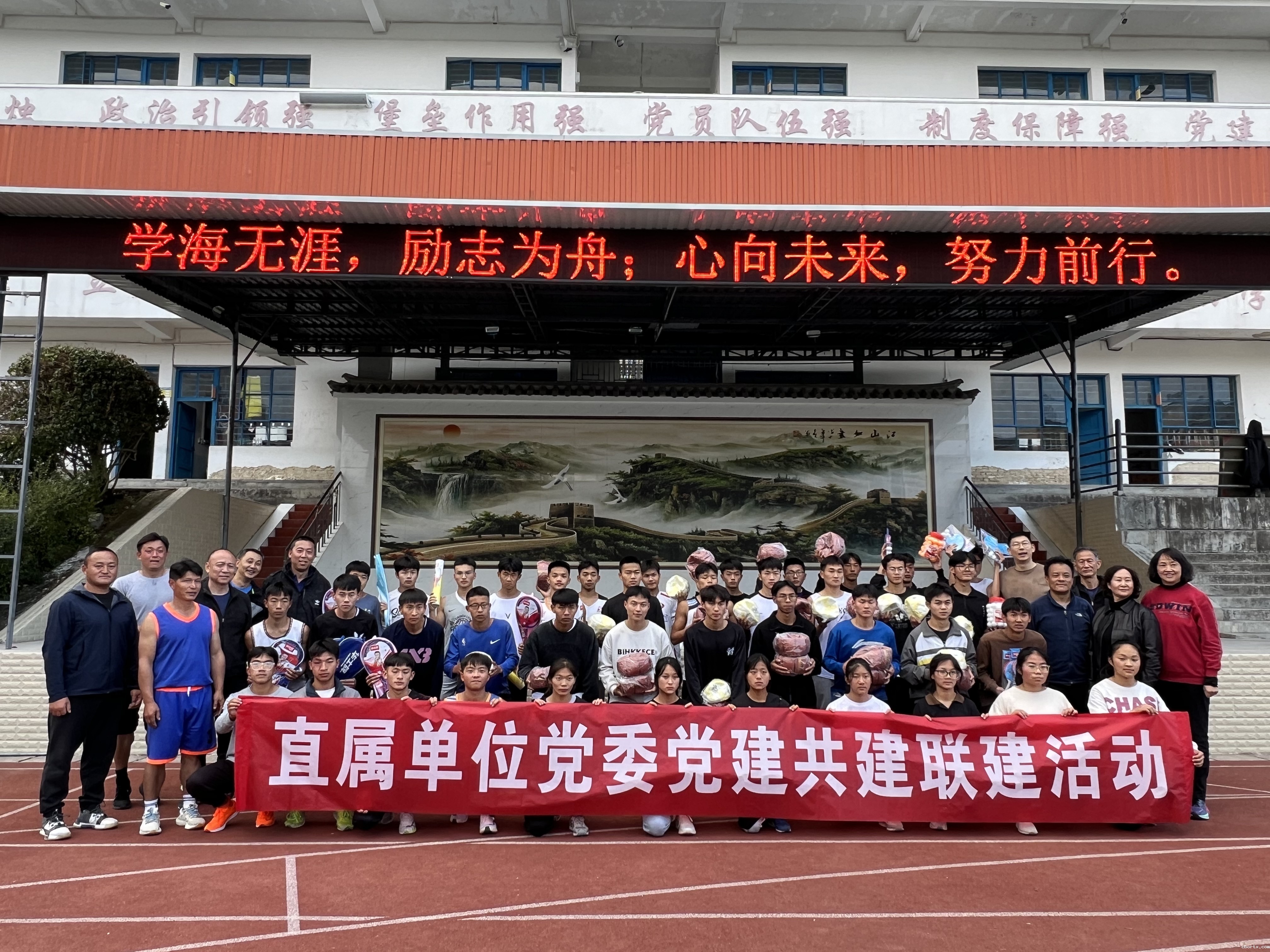 2024年1月23日,直属单位党委、直属单位党委第八支部赴龙陵象达镇看望驻村队员,代表直属单位党委与象达镇总支开展篮球友谊赛活动,直属单位党委第八支部与坝头村支部开展支部共建活动,对龙陵县第三中学体育教学训练工作开展指导,帮扶工作,其中共捐赠200件T恤衫,5000余元体育用品。