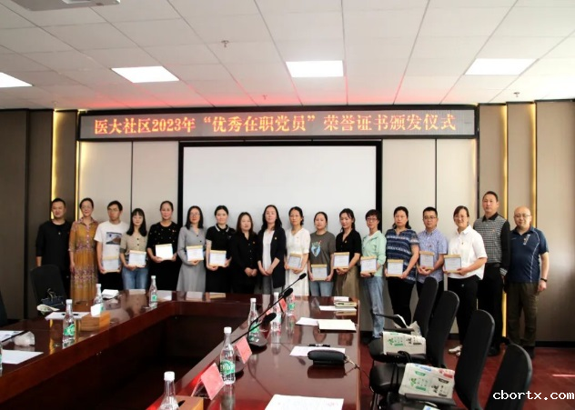 会上,向优秀在职党员颁发医大社区2023年“在职党员”荣誉证书,并送上感谢信,激励“双报到”党员同志们以先进典型为榜样,不忘为民服务的初心,扎实奋进,争做奋发有为的实践者、文明风尚的维护者、美好生活的创造者,继续发挥好党员“旗帜”作用。
