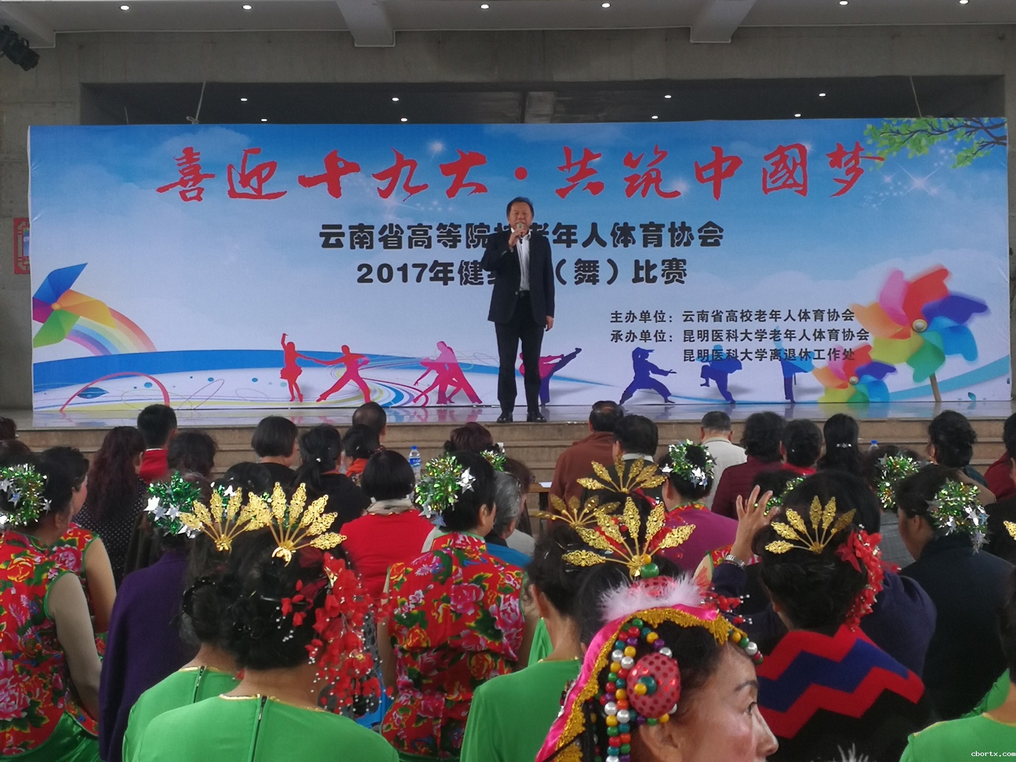 正当中国共产党第十九次全国代表大会召开之际,我们又迎来了2017年云南省高等院校老年人体育休会健身操(舞)比赛。