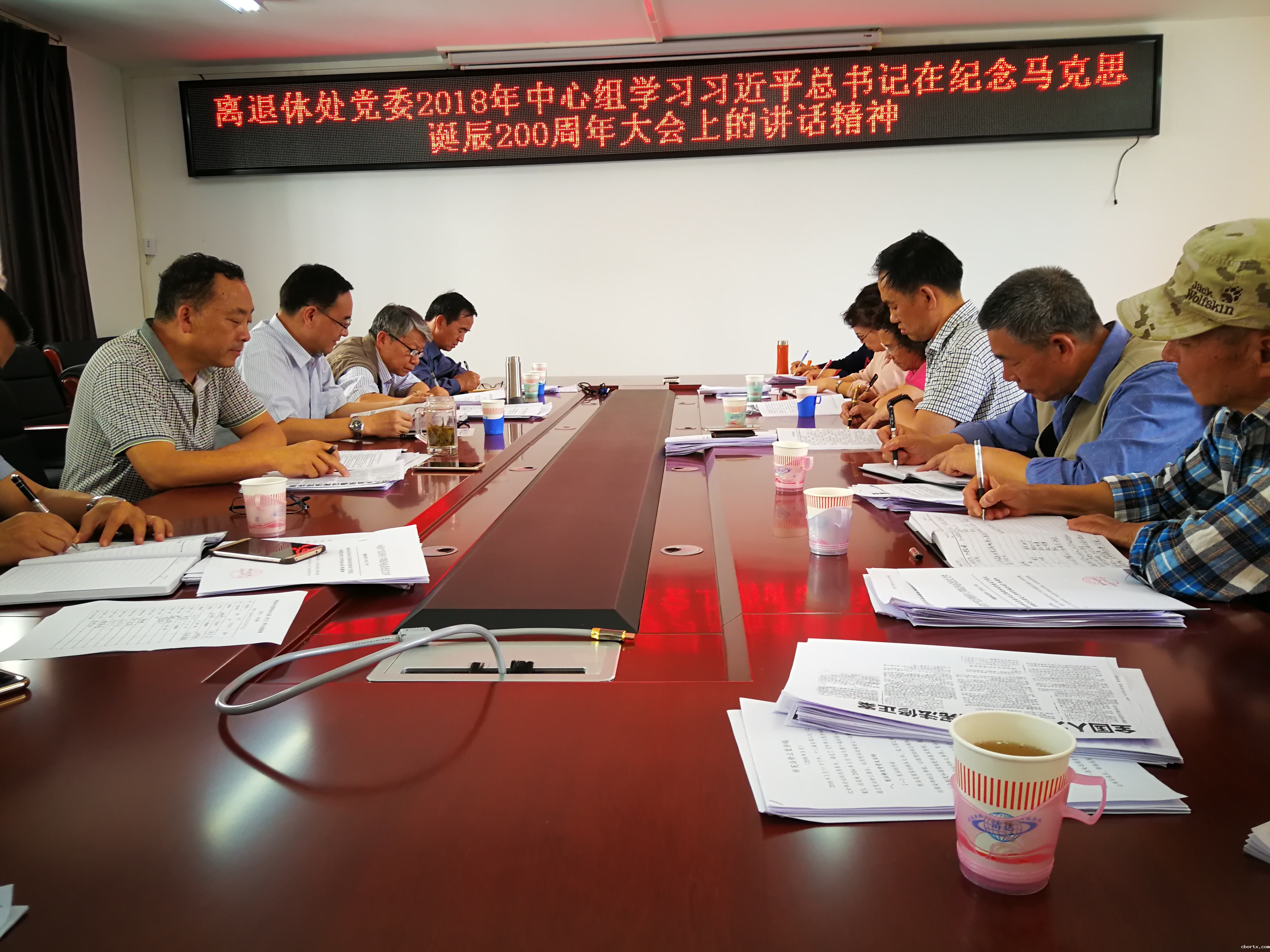 2018年5月4日,纪念马克思诞辰200周年大会在北京人民大会堂隆重举行,习近平总书记在大会上发表重要讲话。按照学校党委的安排,为抓好讲话的学习宣传贯彻,5月23日下午,在平政校区服务管理中心三楼304会议室,离退休处党委召开2018年理论学习中心组(扩大)学习习近平总书记在纪念马克思诞辰200周年大会上的重要讲话精神,离退休处党委委员、各党支部书记、支委、部门在职党员参加了会议。会议由处党委书记姚树明主持。