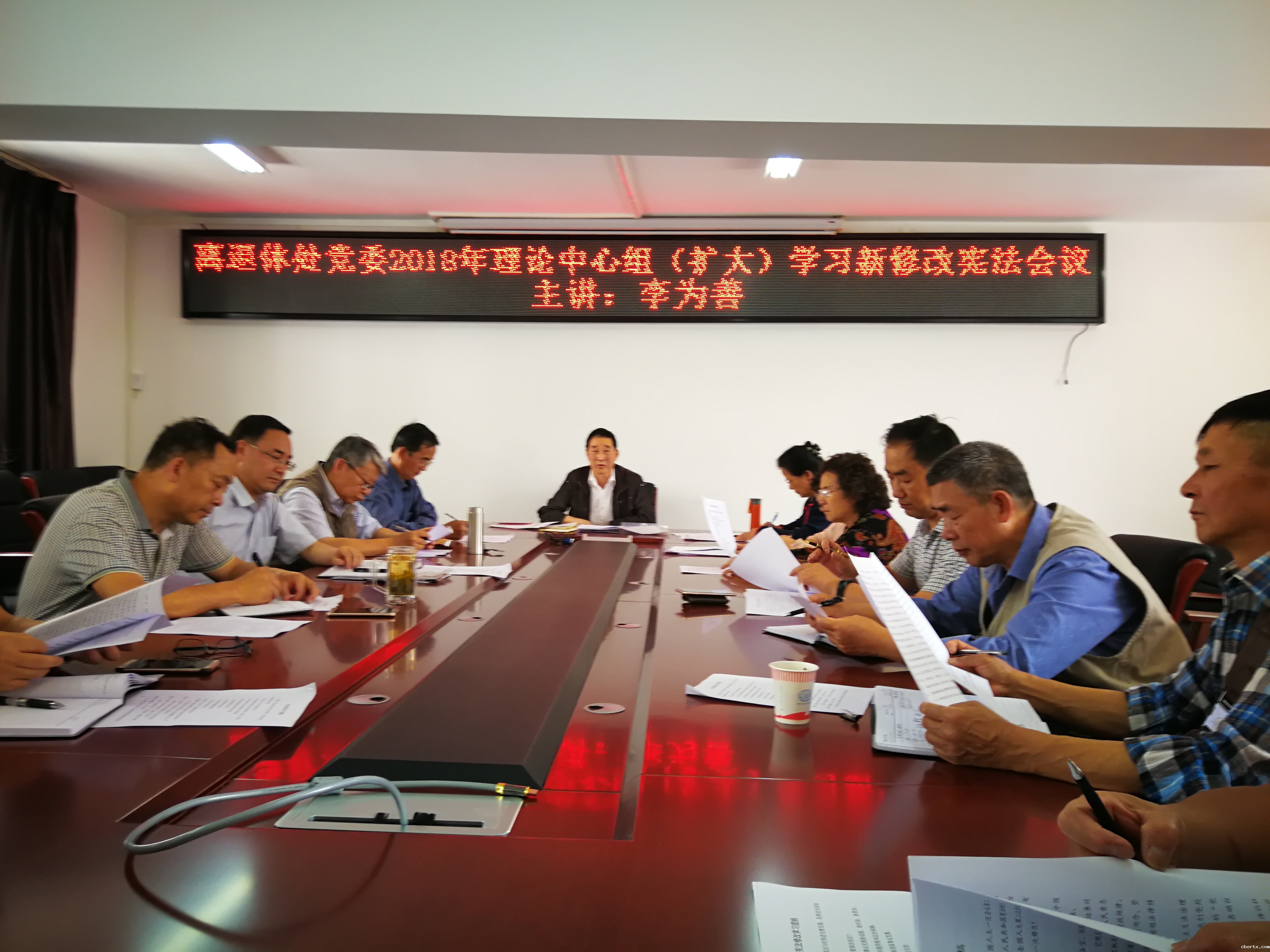 2018年5月23日下午,在平政校区服务管理中心三楼304会议室,离退休处党委召开2018年理论学习中心组(扩大)学习修改后的新宪法会议,会议邀请离退休处党委原党委委员李为善教授作《宪法修改,推动宪法与时俱进完善发展,是推进全面依法治国的重大举措》专题讲座,离退休处党委委员、各党支部书记、支委、部门在职党员参加了会议。会议由处党委书记姚树明主持。