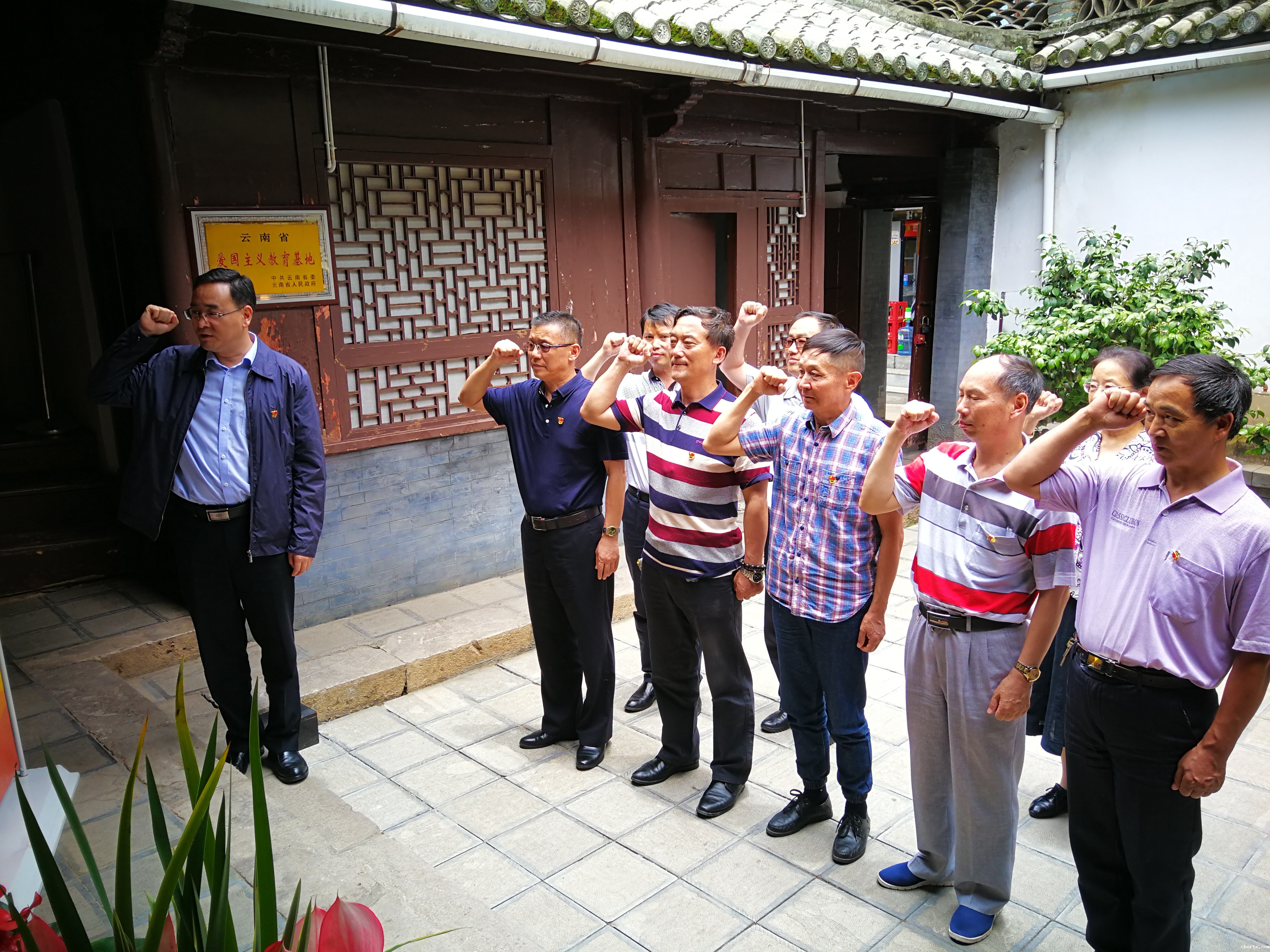下午在主城区昆明市平政街节孝巷39号中共云南地下党建党旧址组织参观学习,与会党员认真听取讲解员介绍中共云南党组织建立初期及发展的历程。最后处党委书记姚树明带领大家共同“重温入党誓词”,进一步牢记初心,不忘使命,为共产主义事业永远奋斗。
