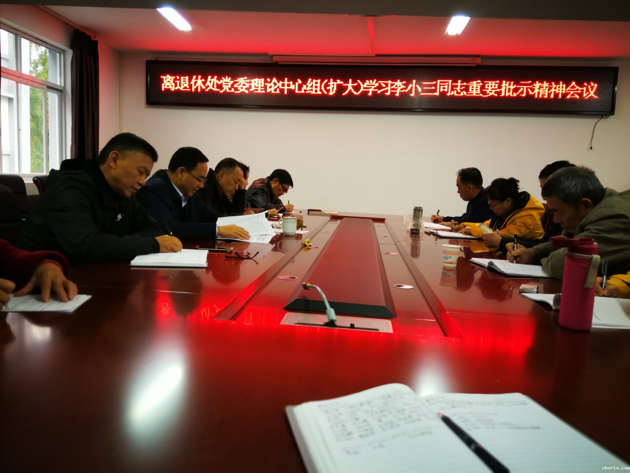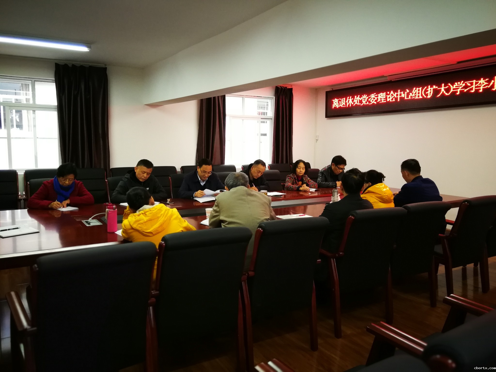 为贯彻省委常委、组织部部长李小三同志关于进一步推进高校党建重点任务落实重要批示的意见。离退休处党委于2018年10月30日(星期二)下午3点在平政校区服务管理中心三楼304会议室召开离退休处党委理论学习中心组(扩大)学习会。会议由党委书记姚树明同志主持,党委委员、党支部书记一共13人参加了学习。