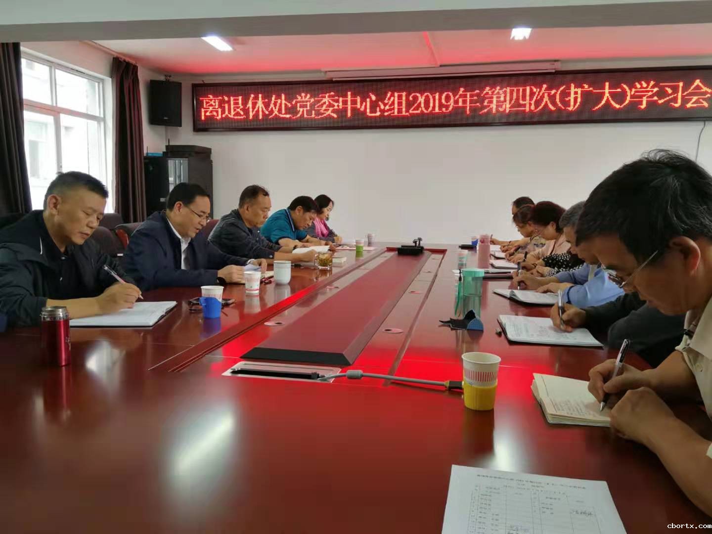 离退休处党委于2019年7月9日(星期二)下午3点在平政校区办公室三楼304会议室召开离退休处党委中心组(扩大)学习会。会议由党委书记姚树明同志主持,党委委员、党支部书记和部门工作人员一共17人参加了学习。