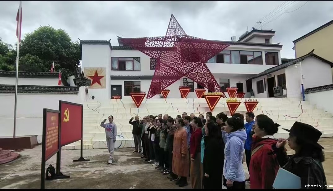 在讲解员的引导下,老同志们认真观看了树桔红军渡纪念馆内陈列的历史照片、革命文物和文献资料。大家在一件件珍贵实物前驻足凝视,仔细聆听讲解,深刻感受红军长征途经此地时与人民群众结下的深厚情谊,以及革命先辈坚定的理想信念和不怕牺牲的英雄气概。次日,队伍继续前往具有重要历史意义的柯渡红军纪念馆——这里曾是中央红军长征总部的驻地。老同志们参观了毛泽东、周恩来、朱德等老一辈革命家曾经工作和生活的场所,观看了记录红军长征过云南、过柯渡的详实史料与影像。通过讲解员生动细致的介绍,大家仿佛重回那段烽火岁月,深切体会到长征的艰难曲折与伟大转折,感受到革命领袖运筹帷幄、决胜千里的智慧与魄力。在党旗前,全体党员庄严宣誓,重温入党誓词,铿锵誓言表达了退休党员不忘初心、牢记使命、永远跟党走的坚定信念。