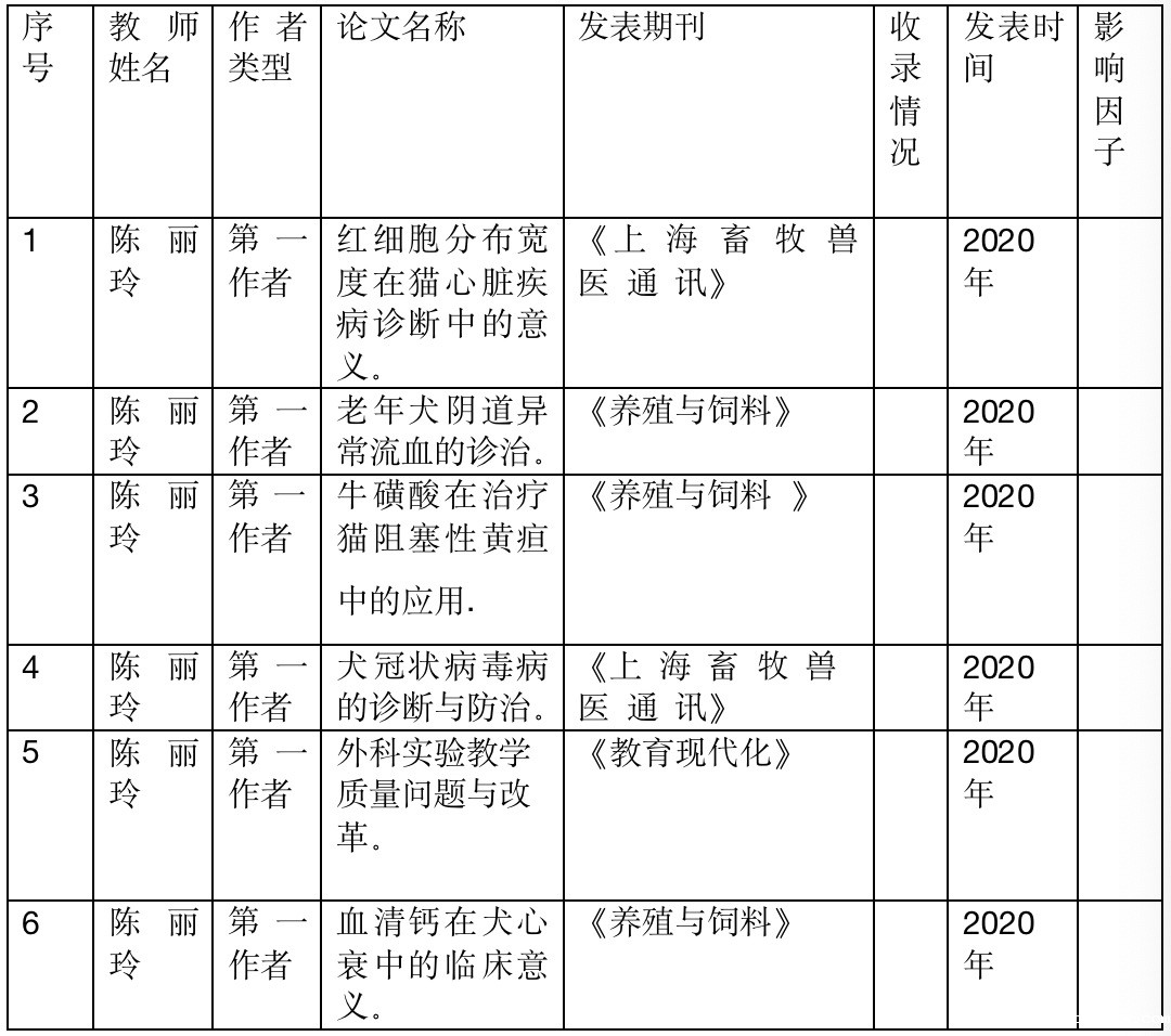 红细胞分布宽度在猫心脏疾病诊断中的意义_陈丽玲.pdf老年犬阴道异常流血的诊治_陈丽玲.pdf牛磺酸在治疗猫阻塞性黄疸中的应用_陈丽玲.pdf犬冠状病毒病的诊断与防治_陈丽玲.pdf血清钙在犬心衰中的临床意义_陈丽玲.pdf外科实验教学质量问题与改革_陈丽玲.pdf