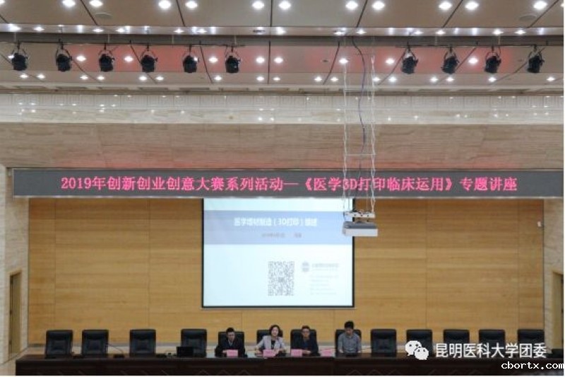 为更好的开展“三创”系列活动,学校团委于2019年4月1日在学术交流中心举办了《医学3D打印临床应用》的专题讲座。此次讲座邀请云南增材佳唯科技有限公司CEO、中国医疗器械协会3D打印医疗专委会冯强副理事长,18luck备用登录第一附属医院骨科钟宗雨博士、云南增材佳唯科技有限公司技术总监李沂桓老师,为青年学生讲述3D打印技术及其应用,共计300余人参加。讲座由校团委杨国华副书记主持。