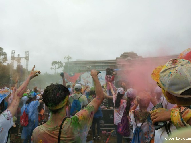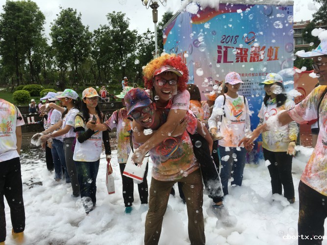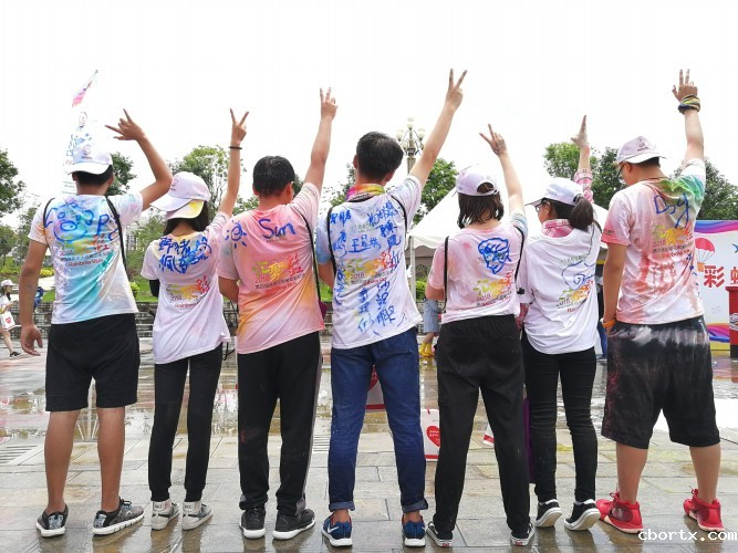白色T恤,七彩粉末,同学们尽情呐喊,欢笑,让衣服染上最绚烂的颜色,作为狂欢的见证。色彩斑斓的彩虹跑,可谓是地球上最快乐的五公里。