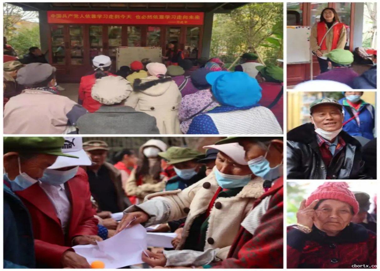2022年1月18日,志愿服务在老人们动听的傈僳民歌中展开。志愿者为老人们带来了汉字和普通话教学,讲解了糖尿病、高血压等慢性病防治的相关知识,通过课堂讲解和游戏互动相结合,让老人们明白了健康饮食和科学用药的重要性,此外,志愿者也为老人们演示了“口罩正确佩戴方式”和“七步洗手法”。