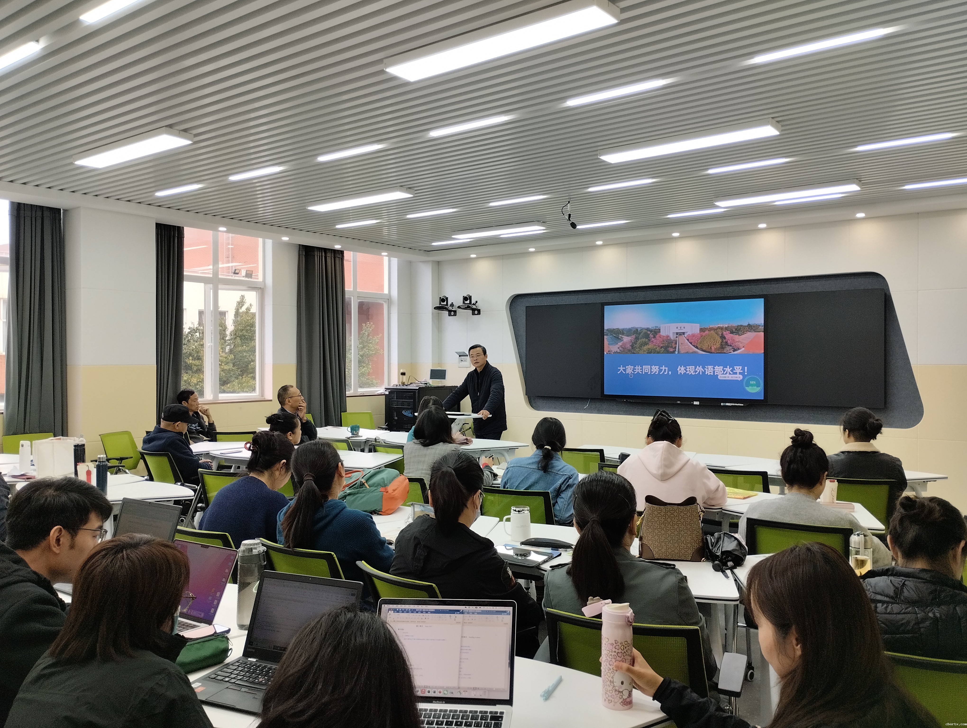2024年10月11日上午,外语部召开了新一轮本科教育教学审核评估动员大会,外语部全体教职工参加了此次会议。