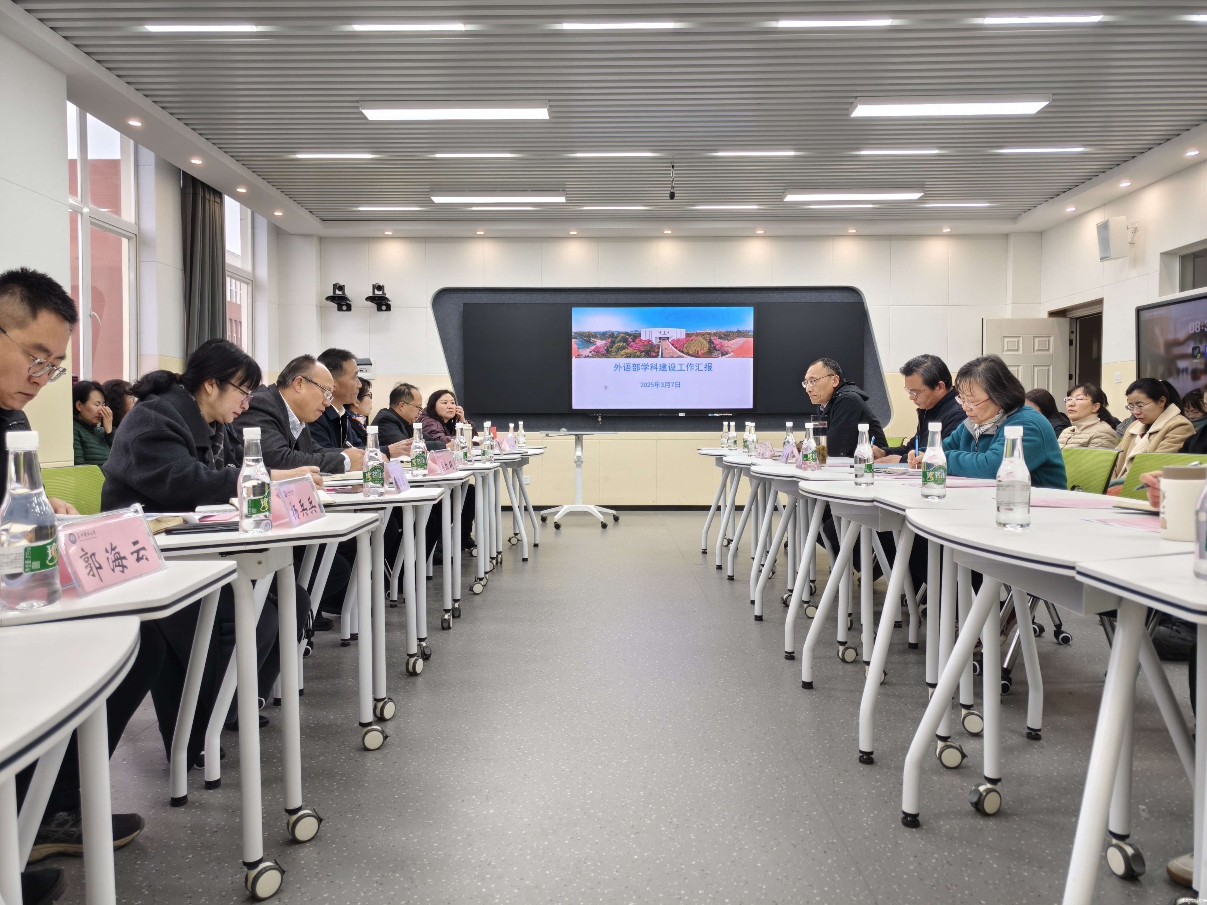 为了推动外语学科高质量发展,2025年3月7日,副校长吴红明和李利华带领研究生处、科学技术处、人事处、财务处、对外合作交流处等部门负责人前往外语部进行学科建设专题调研。外语部主任张祥亭汇报了我部学科建设情况,重点介绍了现状、特色成果、问题及未来规划。医学翻译、医学法律英语及泰语、法语等学科方向的带头人分别发言,汇报了教育教学成果、课程体系创新和师资引育情况。