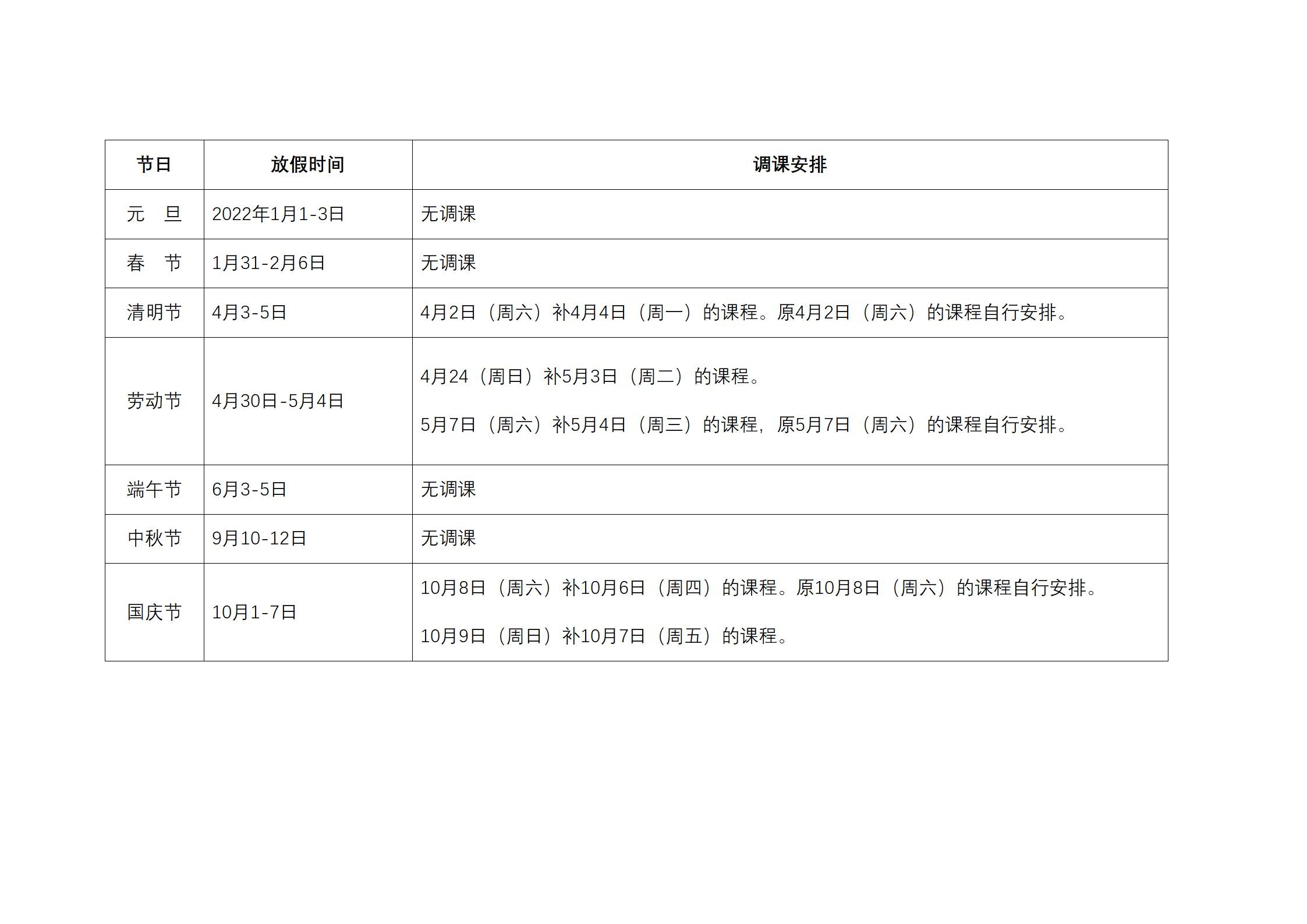 18luck备用登录关于2022年部分节假日放假调停课的通知